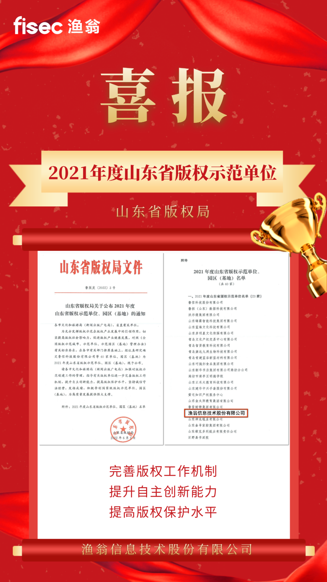 【喜讯】皇御环球MT5信息荣获“2021年度山东省版权示范单位”